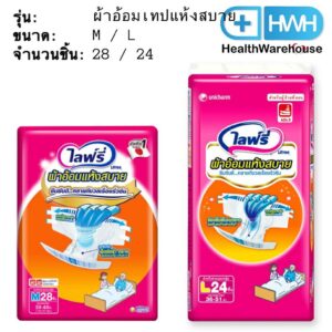 Lifree ผ้าอ้อมเทปแห้งสบาย ผ้าอ้อมแห้งสบาย ( M ) 28 ชิ้น ผ้าอ้อมผู้ใหญ่