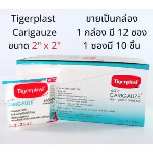 Tigerplast Carigauze 2x2 นิ้ว ผ้าก๊อซใยสังเคราะห์ เนื้อผ้าเกรดพิเศษ ไม่ระขคายผิว จำนวน 1 กล่อง มี 12 ซอง