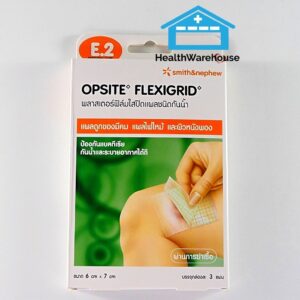 Opsite E.2 Flexigrid 6 x 7 cm 3 ชิ้น / 1 กล่อง พลาสเตอร์ฟิล์มใสปิดแผลชนิดกันน้ำ แผลถูกของมีคม แผลไฟไหม้ ผิวหนังพอง