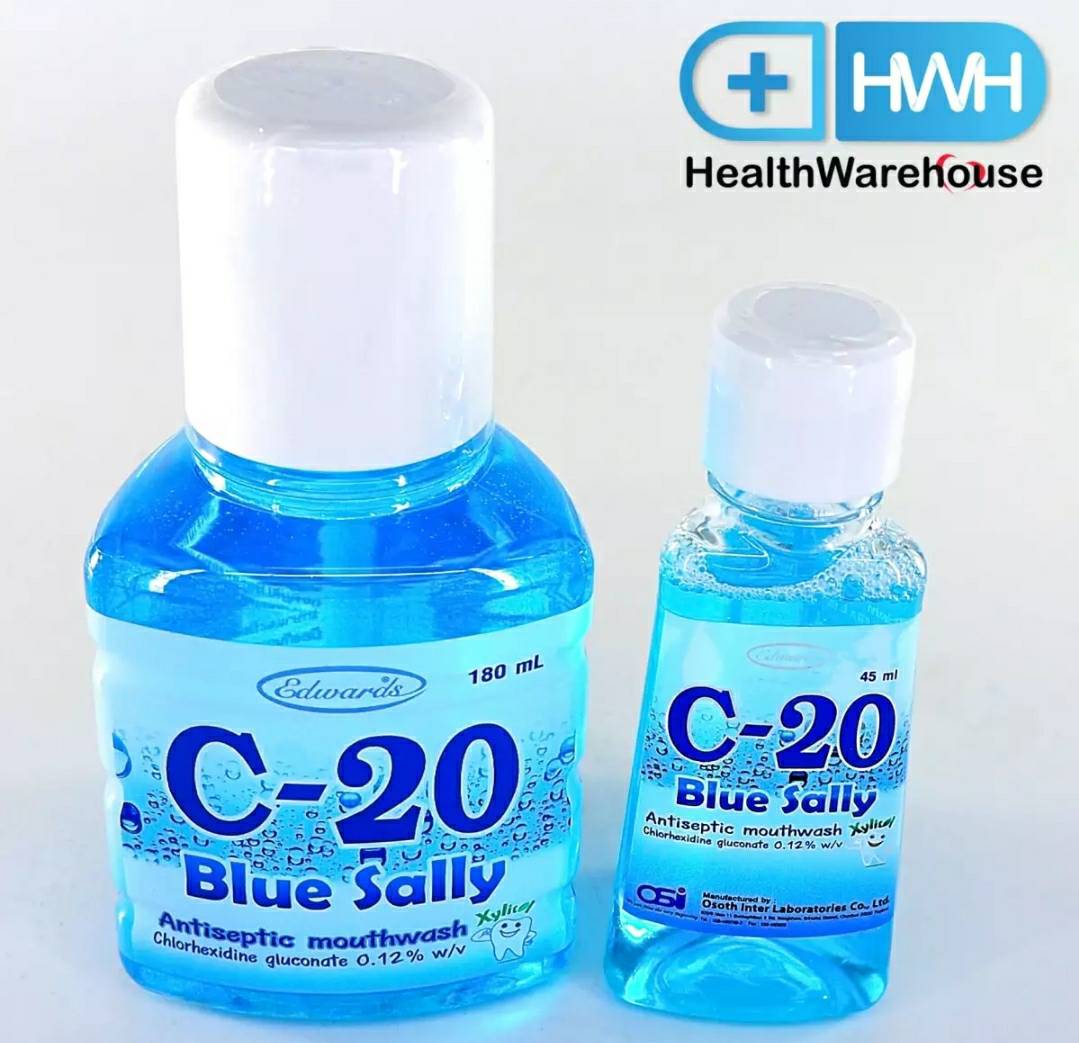 น้ำยาบ้วนปาก C-20 Chlorhexidine Antiseptic Mouth Wash สูตร Blue Sally สีฟ้า 180ml