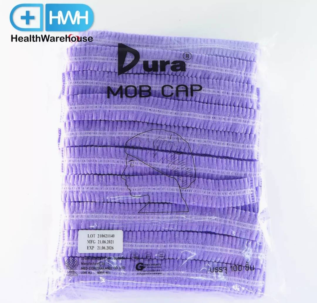 หมวกคลุมผ่าตัด Dura Mob Cap 100 ชิ้น สีม่วง หมวกผ่าตัด หมวกคลุมผม หมวกตัวนอน หมวกอนามัย หมวกป้องกันเชื้อ