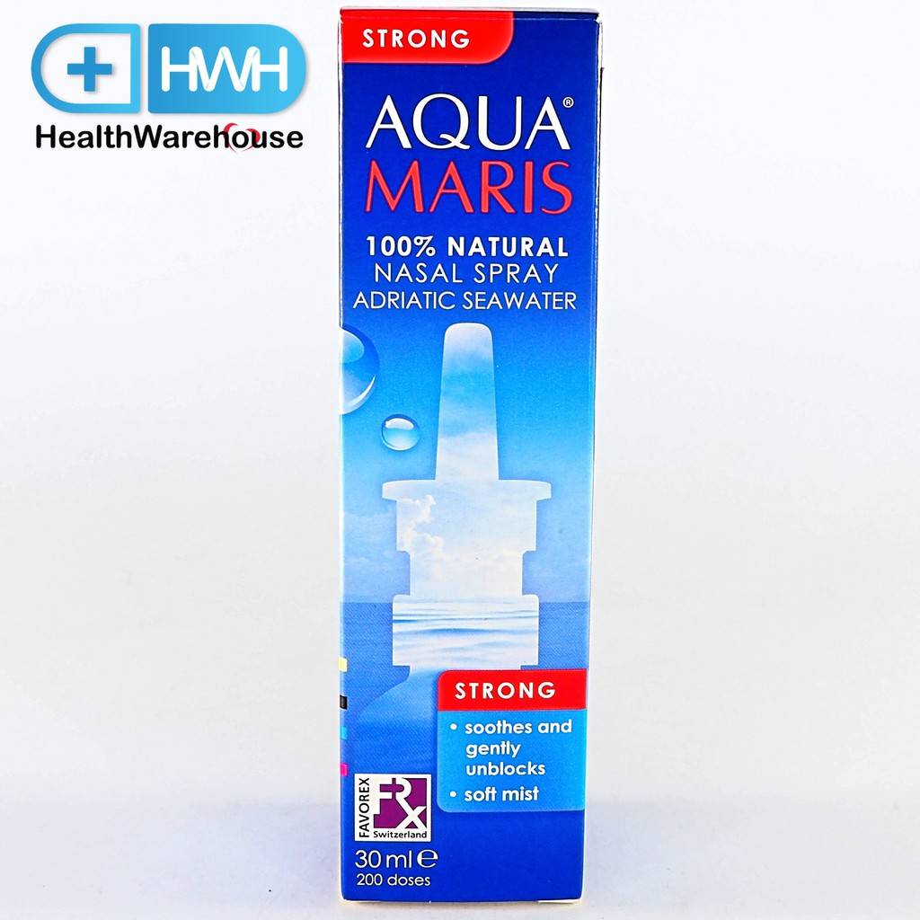 - (Aqua Maris® Strong Nasal Spray) อควา มาริส สตรองสเปรย์พ่นจมูกชนิดความเข้มข้นสูง ขนาดบรรจุ 30 มล.ส่วนประกอบ : สารละลายน้ำทะเลบริสุทธิ์ที่มีความเข้มข้นมากกว่าความเข้มข้นภายในเซลล์ของร่างกาย (Purified Hypertonic Seawater)Aqua Maris® Strong Nasal Spray เป็นสเปรย์พ่นบรรเทาอาการคัดจมูกจากธรรมชาติ ซึ่งสามารถใช้ต่อเนื่องในระยะยาวได้อาการคัดจมูกและหายใจไม่สะดวกเป็นปัญหาที่พบได้ทั้งในเด็กและผู้ใหญ่ โดยเป็นอุปสรรคในการดำเนินกิจกรรมในชีวิตประจำวันสารละลายน้ำทะเลเข้มข้นชนิดไฮเปอร์โทนิก (Hypertonic Seawater) ของ ‘อควา มาริส สตรอง’ มีคุณสมบัติในการช่วยลดอาการระคายเคืองของเยื่อบุทางเดินหายใจส่วนบน เกลือที่เป็นส่วนประกอบของน้ำทะเลบริสุทธิ์ในผลิตภัณฑ์ ‘อควา มาริส สตรอง’ ช่วยกำจัดน้ำส่วนเกินออกจากเยื่อบุจมูก ส่งผลให้อาการบวมลดลงและหายใจได้สะดวกขึ้น Aqua Maris® Strong Nasal Spray เป็นผลิตภัณฑ์ที่แนะนำให้ใช้ในกรณีต่อไปนี้มีอาการหวัดมีอาการภูมิแพ้เป็นไข้หวัดใหญ่ใช้หลังการผ่าตัดจมูก (ภายใต้คำแนะนำของแพทย์)เนื่องจากสเปรย์พ่นจมูก Aqua Maris® Strong ช่วยส่งเสริมสุขอนามัยของจมูกและไม่ก่อให้เกิดผลกระทบต่อระบบอวัยวะต่าง ๆ จึงสามารถใช้ได้อย่างปลอดภัยกับเด็ก สตรีมีครรภ์ มารดาที่ให้นมบุตร และผู้สูงอายุสเปรย์พ่นจมูก Aqua Maris® Strong Nasal Spray ใช้งานสะดวก ง่าย ให้ละอองที่อ่อนโยนจากขวดสเปรย์แบบปั้มที่ทันสมัย ผลิตภัณฑ์นี้เหมาะสำหรับผู้ใหญ่และเด็กอายุ 3 ปีขึ้นไปที่สำคัญ…ไม่ผสมวัตถุกันเสียและและสารเติมแต่งใด ๆ