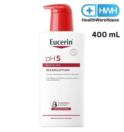 Eucerin pH5 SENSITIVE SKIN WASHLOTION 400 ML ยูเซอริน พีเอช5 เซ็นซิทีฟ สกิน วอช โลชั่น 400 มล. (ชาวเวอร์ สำหรับผิวธรรมดา ผิวแห้ง บำรุงผิวนุ่มชุ่มชื้น)