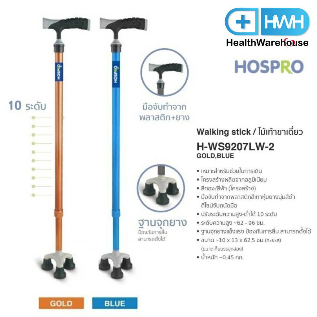 คุณลักษณะทั่วไปของไม้เท้าขาเดี่ยว ยี่ห้อ Hospro รุ่น H-WS9207LW-2