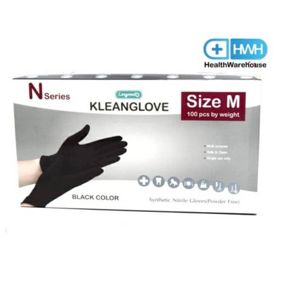 KLEANGLOVE Longmed ไนไตร สีดำ สีฟ้า ไม่มีแป้ง ลองเมด คลีนโกรฟ ถุงมือ ไนไตร ถุงมือไนไตร สังเคราะห์ สีดำ 100 ชิ้น