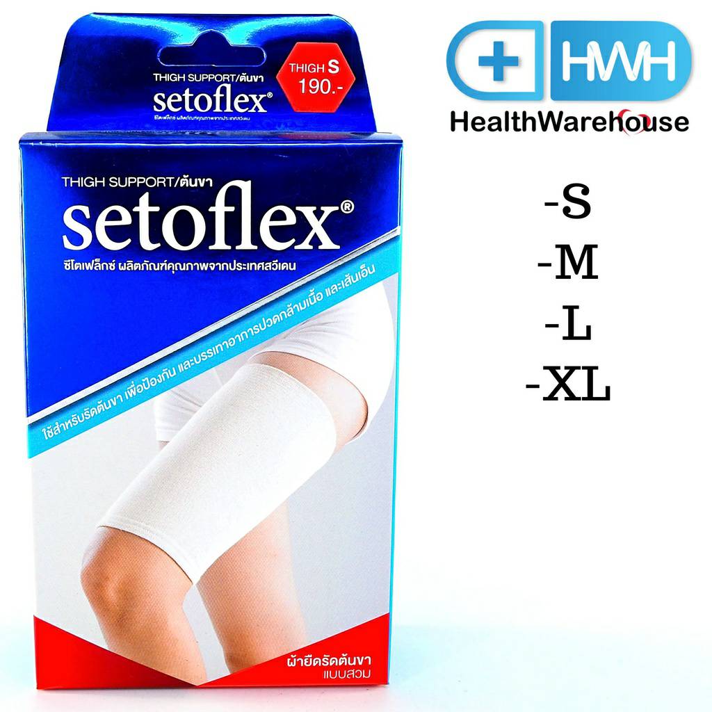 Setoflex thigh support ผ้ารัดต้นขา บรรเทาอาการปวดกล้ามเนื้อ ปวดเมื่อย เคล็ดขัดยอก ลดอาการบวมบริเวณต้นขาจากการบาดเจ็บหรือทำงานมากเกินไป ช่วยให้เลือดไหลเวียนในบริเวณที่ต้องการได้ดีขึ้น
