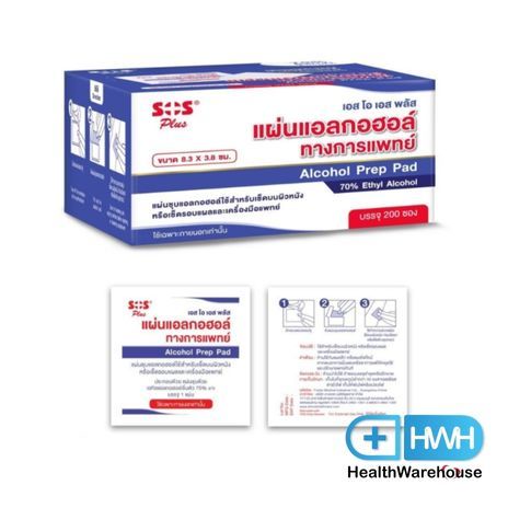 ซื้อสินค้าSOS PLUS ALCOHOL PREP PAD 200 ซอง แผ่นแอลกอฮอล์ทางการแพทย์