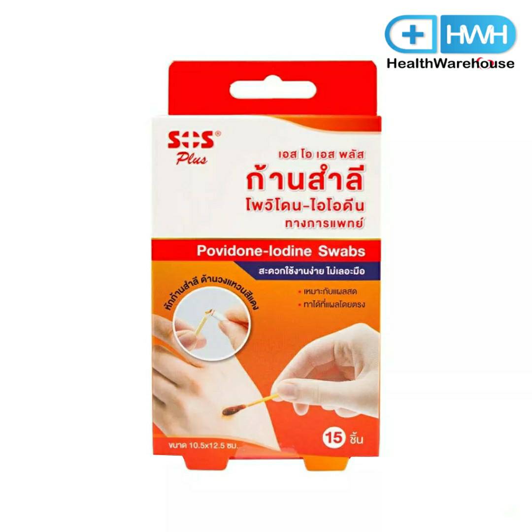 SOS Plus Povidone Iodine Swab 15 ชิ้น/กล่อง เอสโอเอส พลัส ก้านสำลี โพวิโดน ไอโอดีน