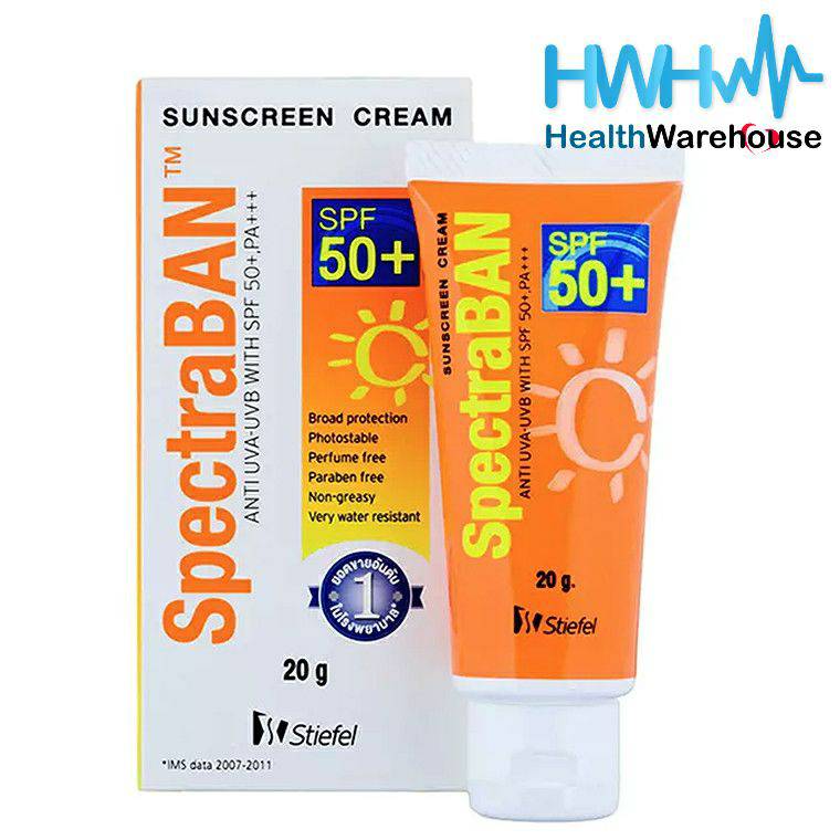SpectraBAN SPF 50+ สเปคตราแบน เอสพีเอฟ 50+ ULTRA PROTECTION Broad UVA/UVB protectionม Light, non-greasy, Non-comedogenic, Very water resistant