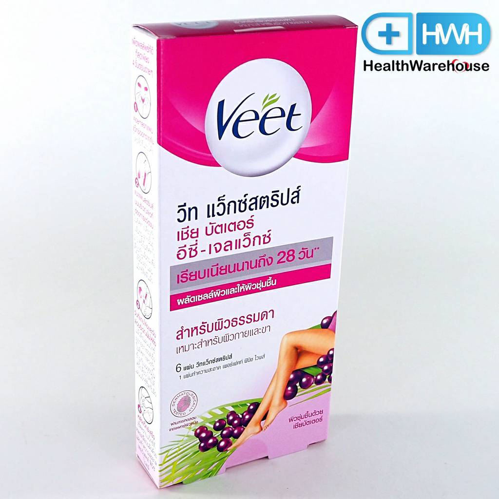 VEET Wax Strips วีท แว็กซ์สตริปส์ ( ชมพู )เชีย บัตเตอร์ อีซี่เจล-แวกซ์