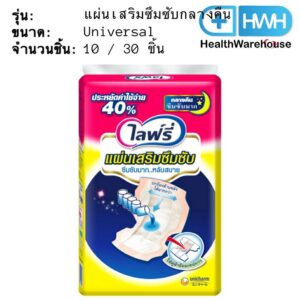 Lifree แผ่นเสริมซึมซับ แบบกลางคืน ( 30 ชิ้น ) ไลฟ์รี่ แผ่นเสริมซึมซับกลางคืน
